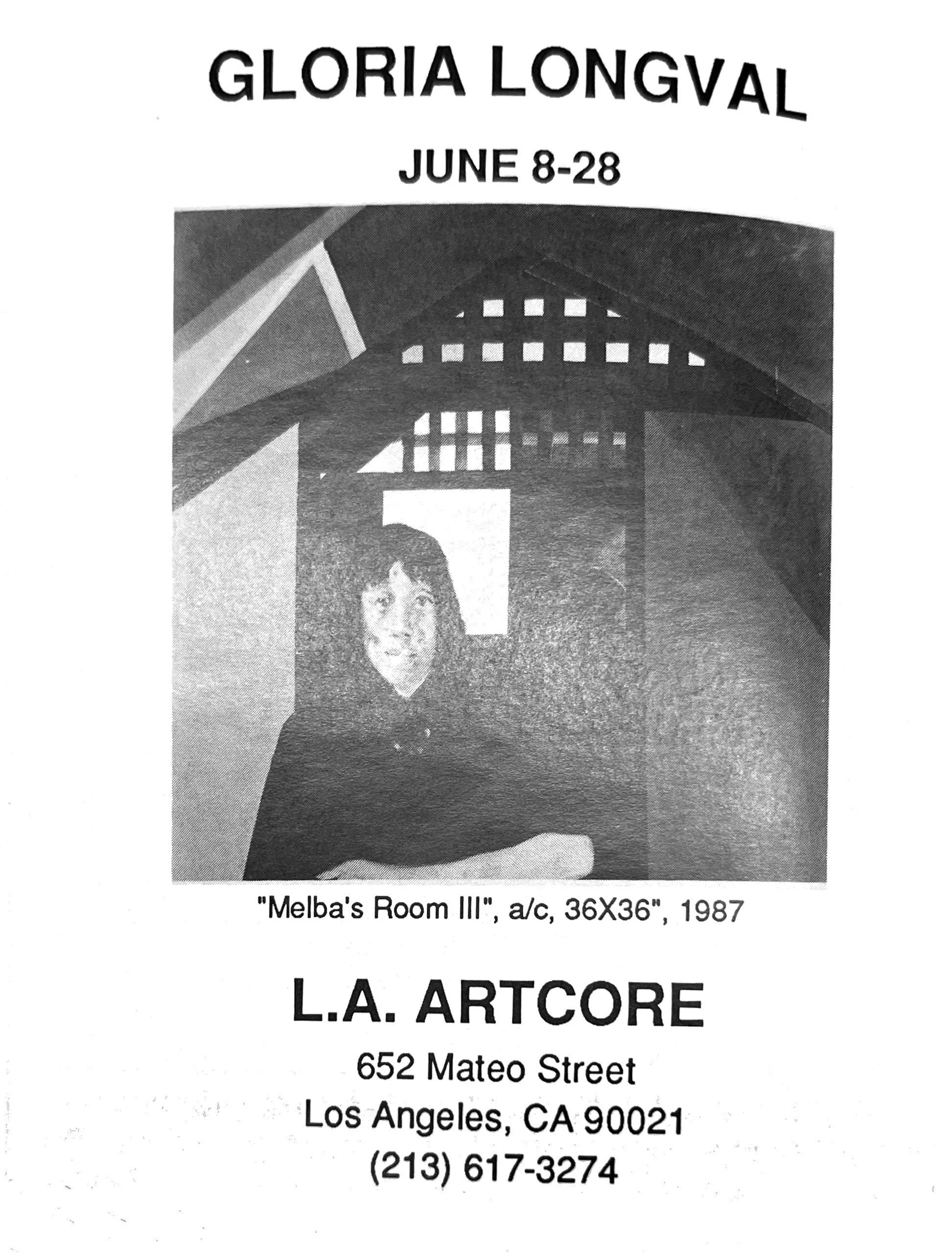 Gloria Longval Monday, June 8, 1987 3:30 PM 15:30 Sunday, June 28, 1987 4:30 PM 16:30 LA Artcore 652 Mateo Street Los Angeles, CA, 90021 United States (map) Google Calendar ICS Gloria LongvalJune 8 - June 28, 1987Mateo